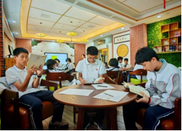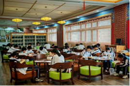 午后的梅石书屋里,一种沉浸式的宁静扑面而来,同学们错落有致地安坐于书桌四周,或凝神忘我阅读,或用心记录心得。无数安静、专注的侧影勾勒成一幅和美的画卷。
